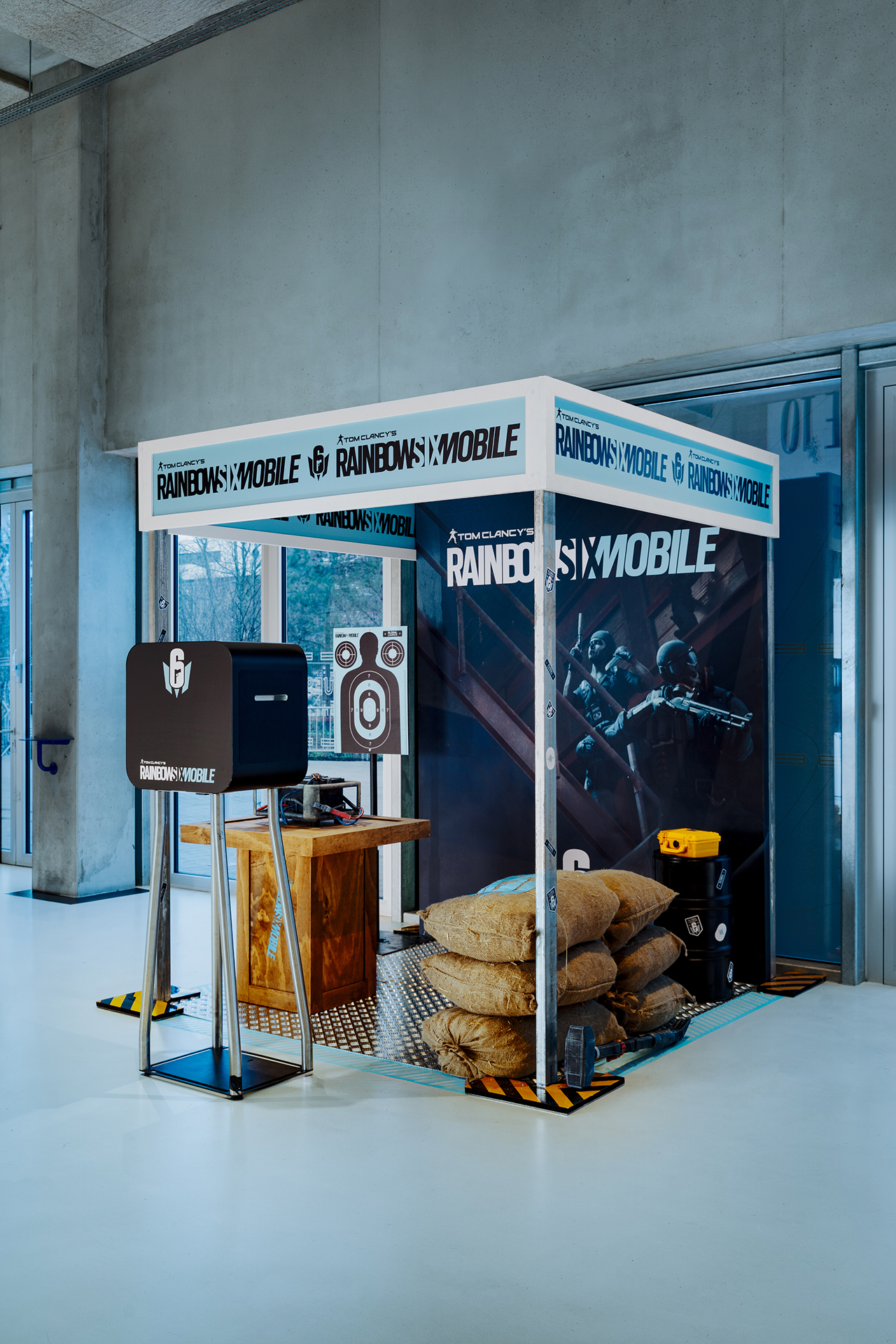 The first one takes the form of a training zone, where visitors can come and test Rainbow Six Mobile in an environment inspired by the game’s military training facilities.