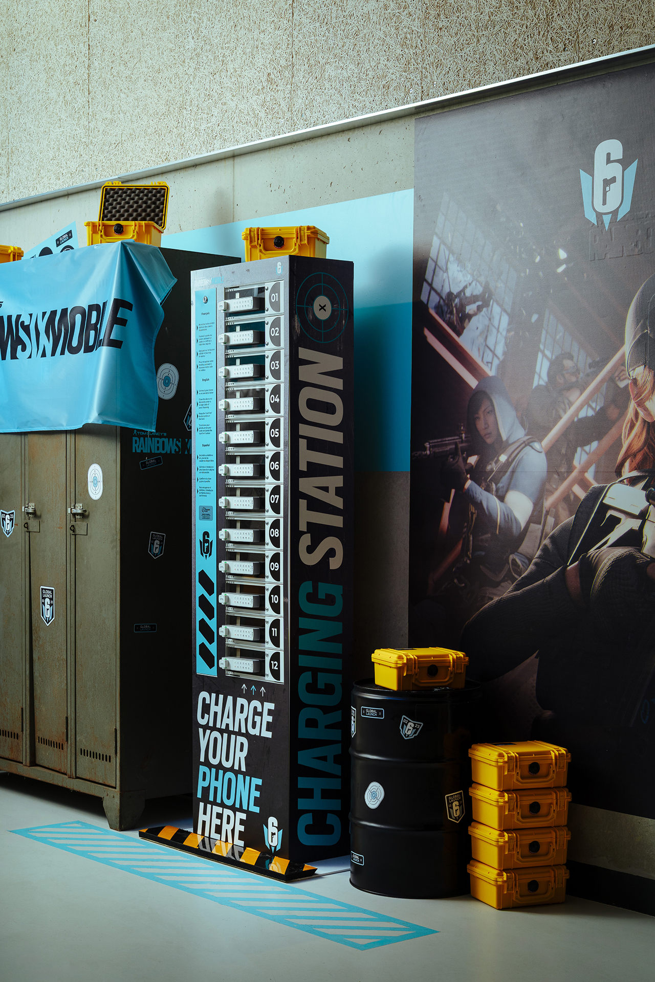 For the global launch of Rainbow Six Mobile, Ubisoft approached us to design several activation spaces inside the Adidas Arena during the biggest competition of the year, the Six Invitational. The goal was to promote the release of the game while giving players and visitors the opportunity to discover and test Rainbow Six Mobile for the first time in an immersive environment.